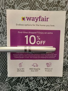 WAYFAIR 10% Coupon Discount Code First Time Shoppers! Expires 8/2/22 ... WAYFAIR 10% Coupon Discount Code First Time Shoppers! Expires 7/21/22 FAST SEND. $2.49 + $0.01 shipping + $0.01 shipping + $0.01 shipping. wayfair 10% discount coupon code. ... Interest will be charged to your account from the purchase date if the balance is not paid in full within 6 months. Minimum monthly payments are required. Subject to ...