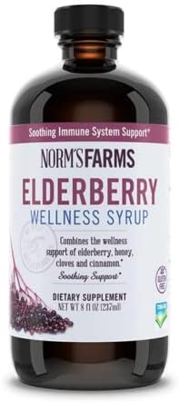 Norm's Farms Black Elderberry Wellness Syrup + Honey, Cinnamon, & Cloves - Natural Immune Support - Kosher, Gluten Free, Non-GMO - 1 8 Oz. Bottle