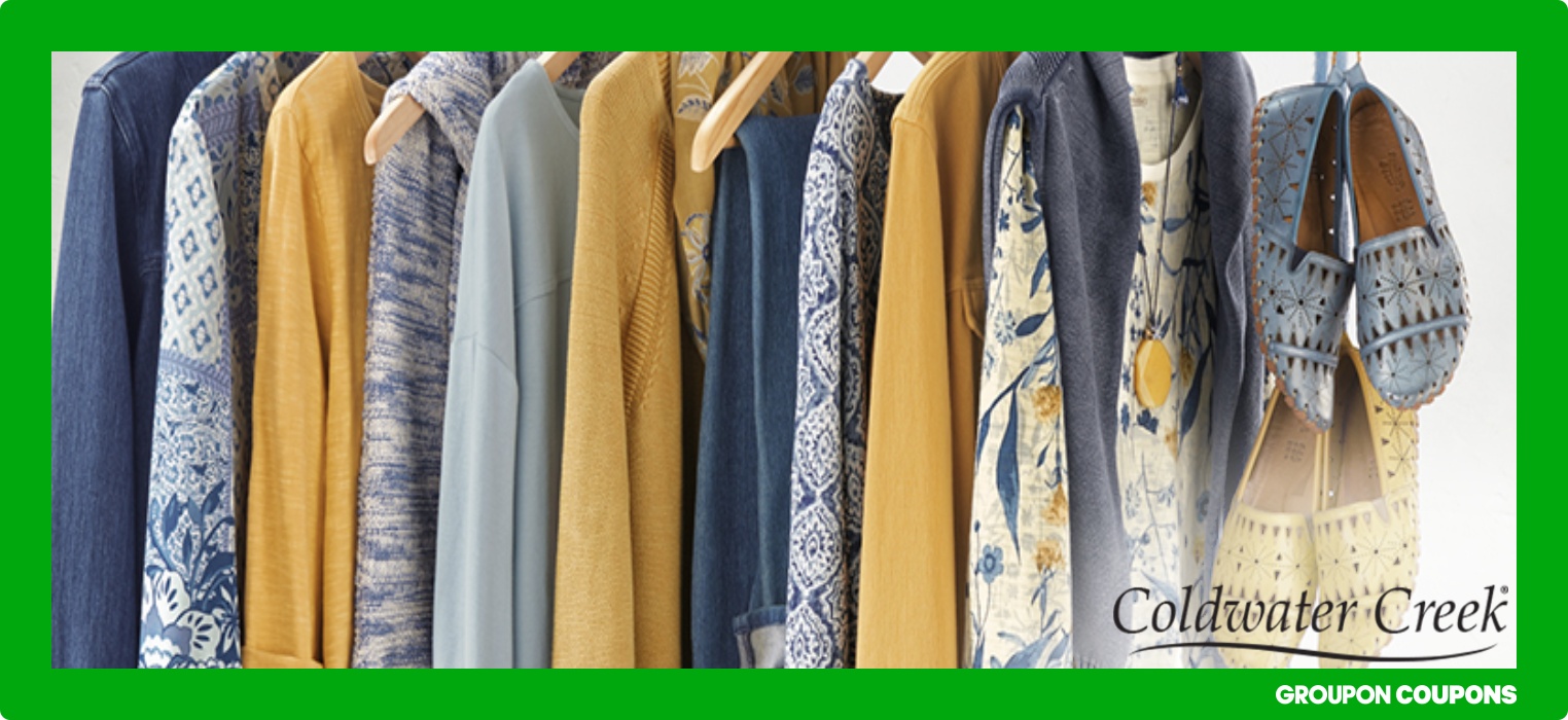 50% Off Coldwater Creek Coupons & Promo Codes - September 2022 For Coldwater Creek coupon codes and sales, just follow this link to the website to browse their current offerings. And while you're there, sign up for emails to get alerts about discounts and more, right in your inbox. Thank you for using Groupon Coupons! [missing en_US 'js.modules.shared.GetDeal' translation]