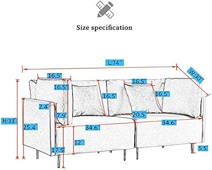 Mid Century Modern Couch Beige,JULYFOX 74 inch Wide Fabric Sofa with Overstuffed Seat Back Cushion Golden Legs Heavy Duty 4 Toss Pillows for Small ...